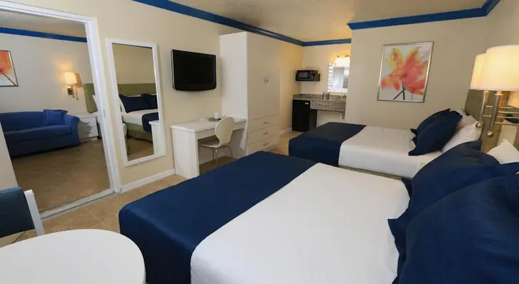 “A good fit for families, SUNSOL International Drive offers an outdoor playground, a pool with a snack bar, and a small splash park.”