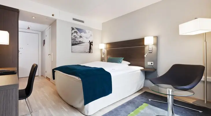"This modern business hotel occupies one of the city center's taller buildings, giving some top-floor rooms views of Oslo's rooftops."