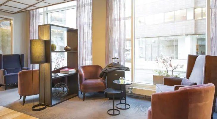 "This modern hotel in the centre of Oslo has a glass atrium and rooms that all feature wooden floors, modern decor and furnishings, and city or atrium views."