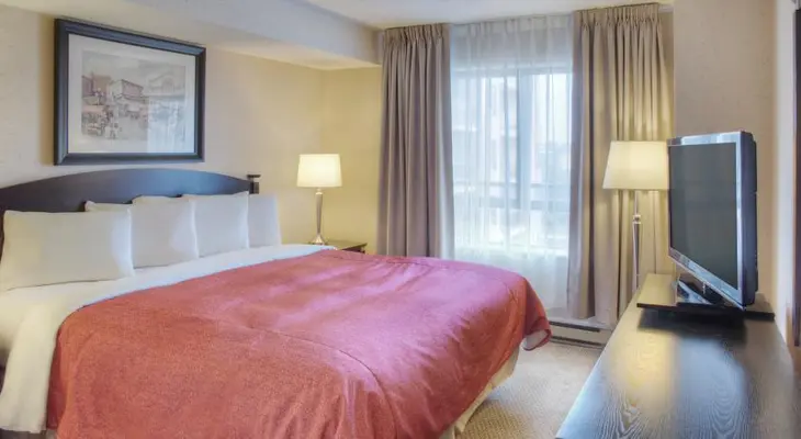 “Spacious suites in this downtown hotel at the edge of the Byward Market district feature one or two bedrooms, full kitchens and in-suite laundries.”