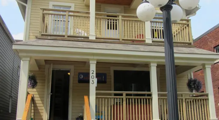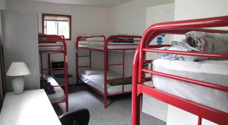"Spartan, informal, medium-sized hostel in a chalet-like building on a side street close to Byward Market. Self-catering facilities, internet access and linen supplied (free)."