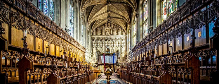 Set between the two is the Perpendicular style chapel (1442) with its magnificent medieval retables and 15 C windows.