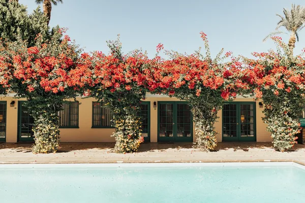 "A winding pathway flanked by fruit trees and wild bougainvillea greets guests at Casa Cody, a 30-room hotel in downtown Palm Springs"