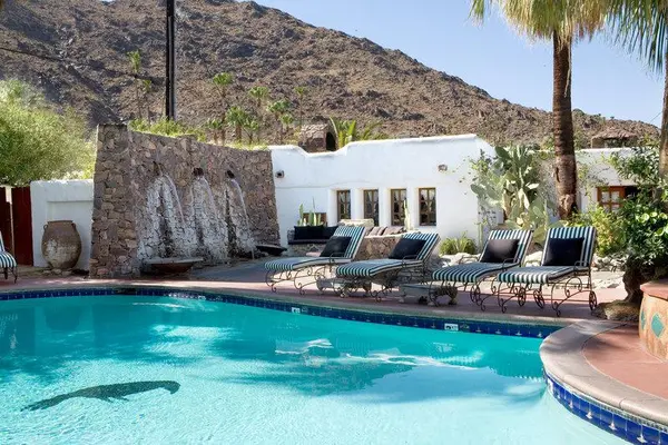"Romantic Moroccan oasis in the center of Palm Springs with outdoor movie screenings, flowering gardens and fire pits." Full review