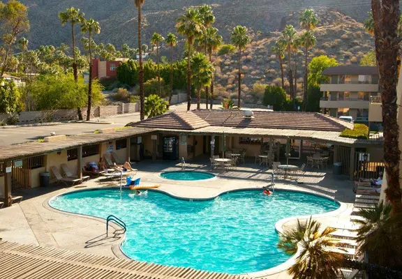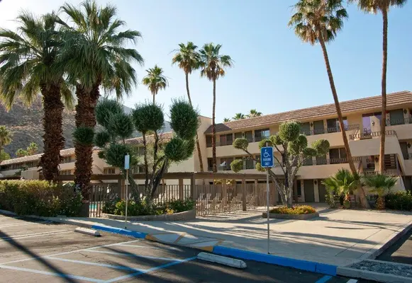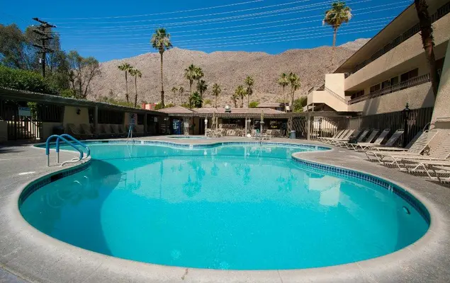 “The 120-room Vagabond Inn Palm Springs is a low-frills budget hotel located about a five-minute drive from the heart of Palm Springs.”