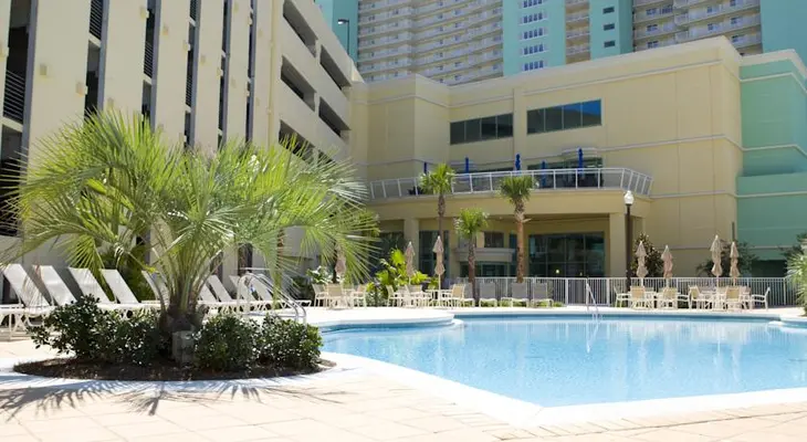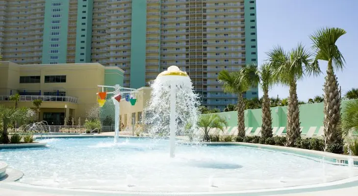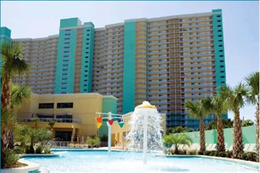 “Condo units have full kitchens. ...The upper floor Sky Bar is a unique feature in the area. ... The beach is beautiful and condos offer big balconies with Gulf views.”