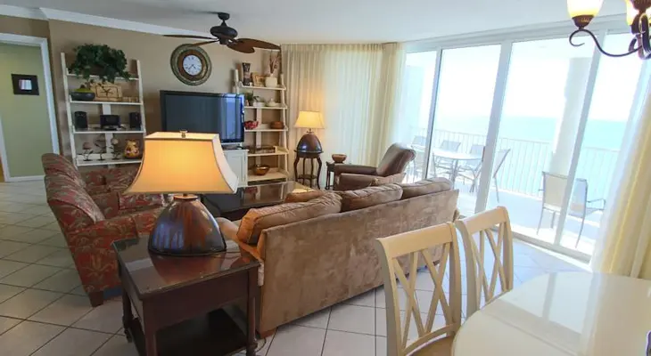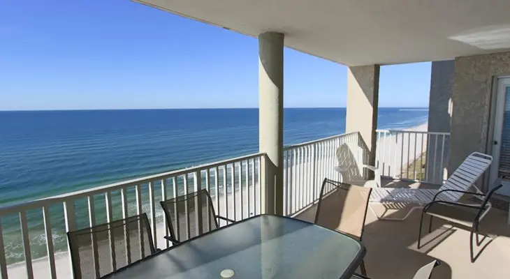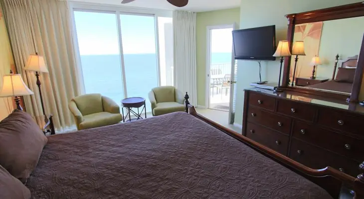 “The value resort has 85 privately owned condos that range from studios to three-bedroom units. All rooms have large balconies with pretty gulf views as well as living rooms and kitchens.”