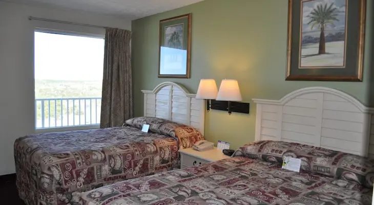 "Offers slightly aging all-suite rooms, complete with full kitchens, as well as a free airport shuttle and complimentary continental breakfast; the location facing the beach can’t be beat."