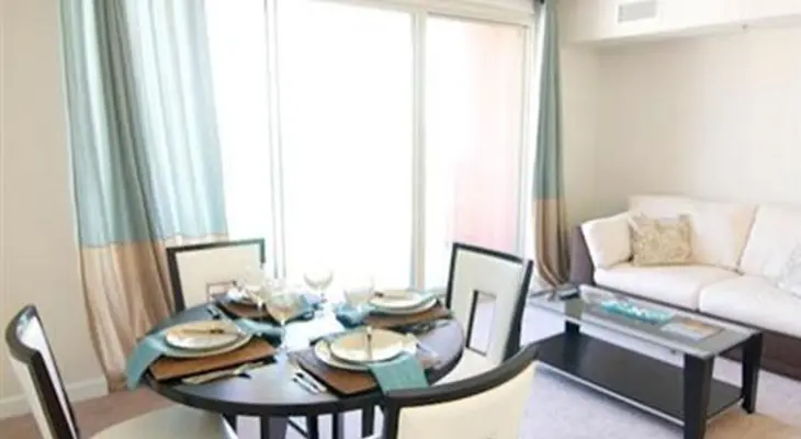 “Offers some of the most spectacular views in the resort, with 23 floors looming over the beach and a giant pool. Suites range from studios to two bedroom, all... with balconies and kitchens.”