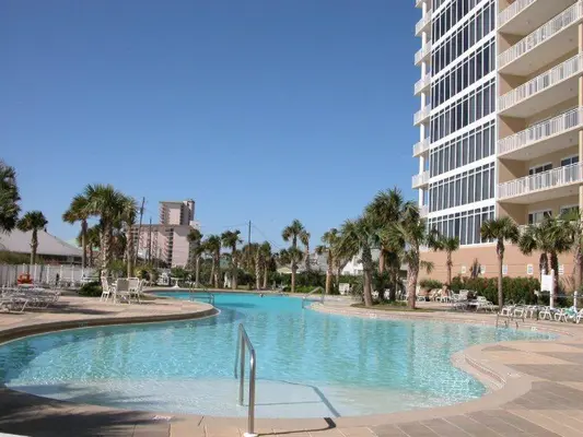 “This deluxe resort condominium complex sits on five acres, fronting a wide swath of sugar-white sands in the heart of Panama City Beach action. ... Spacious units are luxuriously furnished.”