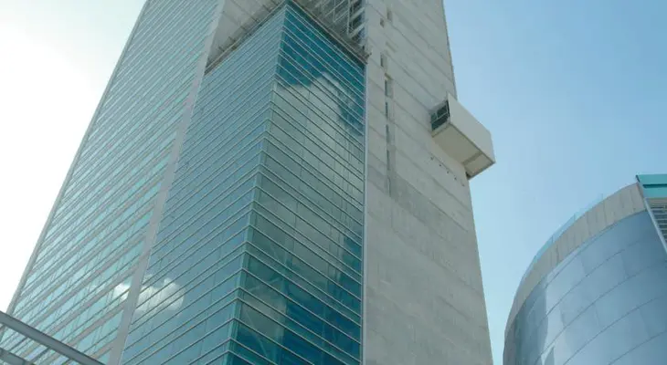 “The Radisson Decapolis Hotel is a modern, upscale building in the financial district of Panama City.”
