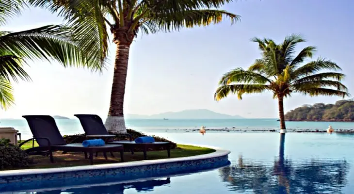 “Sprawling tropical resort set on a private Panama City beach 20 minutes from downtown, with a top-notch spa and five pools.”