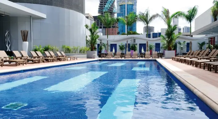 “Centered in Panama City's bustling financial district, the 35-story Riu Hotel blends seamlessly into the skyscraper-clad landscape.”