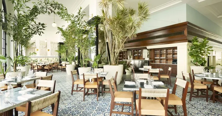 Set in the high-ceilinged lobby of the American Trade Hotel, The Dining Room is an elegant venue that pays great attention to detail. — Fodor's