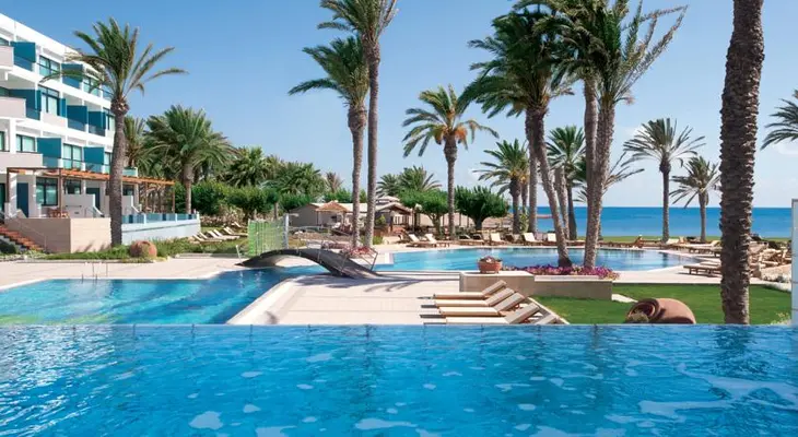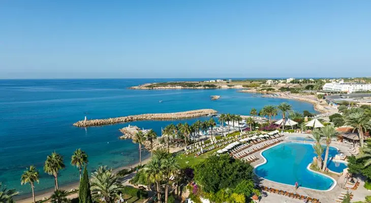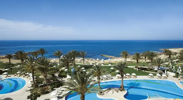 King Evelthon Beach Hotel & Resort is a four-pearl, all-inclusive hotel overlooking the sea, a short drive north of Paphos. — Oyster