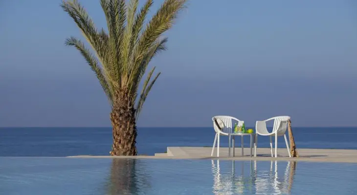 The 110-room upscale Constantinou Bros Asimina Suites Hotel is an adult-only resort on a private rocky beach with two large outdoor pools plus a heated indoor pool. — Oyster