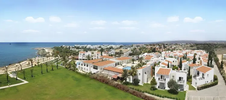 “Akti Beach is a large three-pearl resort with a quiet waterfront spot just 15 minutes from Paphos town by car.”