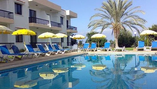 “This mid-range hotel offers travelers a peaceful setting just north of Paphos, near Cyprus’s western coast.”