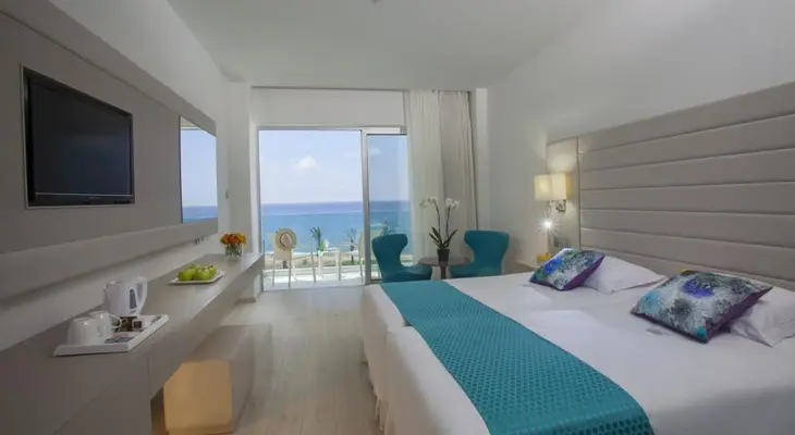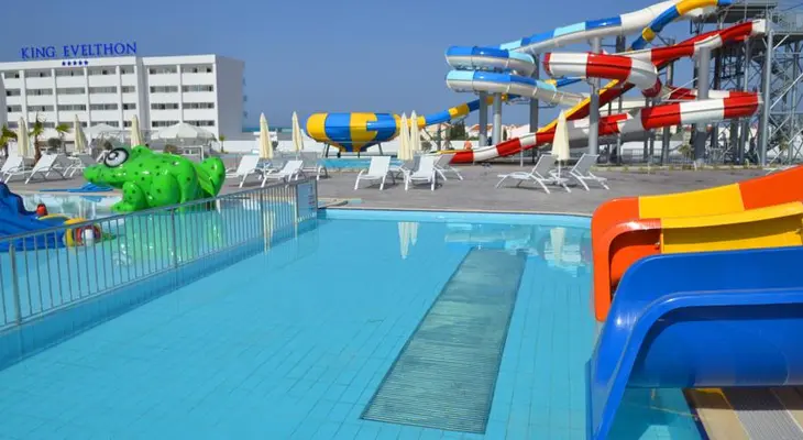 “King Evelthon Beach Hotel & Resort is a four-pearl, all-inclusive hotel overlooking the sea, a short drive north of Paphos.”