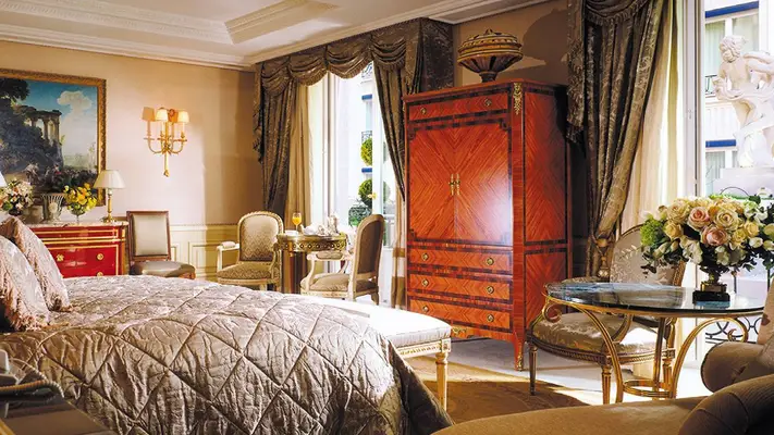 "Chandeliers, marble and tapestries; glorious flower arrangements; divine bathrooms; and ludicrously comfortable beds in some of the largest rooms in all of Paris." Full review