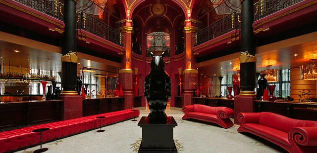 "The heart of this hotel is an extravagant lobby with an arched colonnade, colored in deep reds and gold." Full review
