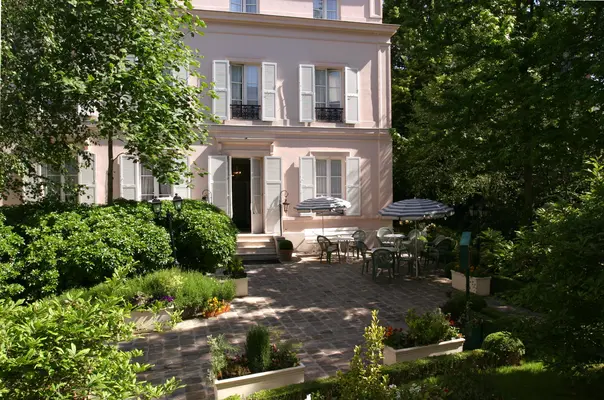 "This hotel is a cluster of three small houses around a beautiful garden, where you can breakfast in good weather."