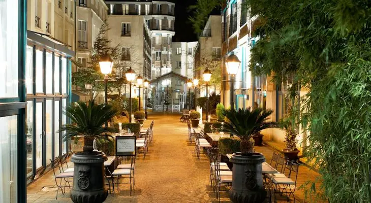 “Behind an unassuming facade on a narrow street, this rambling hotel's nine historic buildings (including Gustave Eiffel's old workshop) surround a spacious sculpture-garden courtyard.”