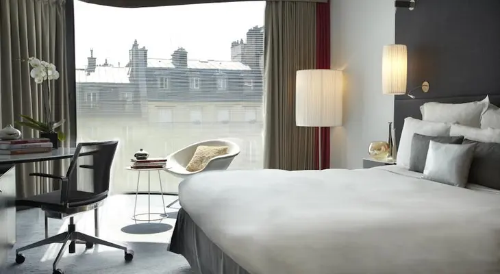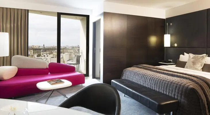 “Occupying the site of the former Empire theatre, this hotel opened in 2009 was designed by Christian de Portzamparc. 1970s themed decor in the guestrooms and high-tech facilities.”