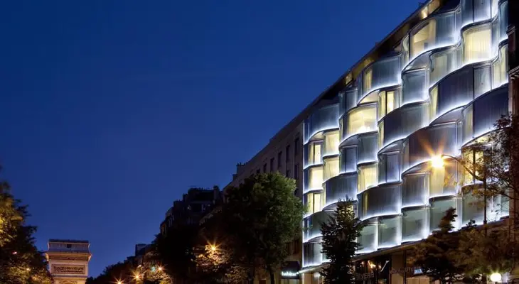 "On the site of the once-famous Theatre de l'Empire, this cutting-edge hotel with its intriguing modern interiors lies only steps from the Arc de Triomphe and the Champs-Élysées." Full review