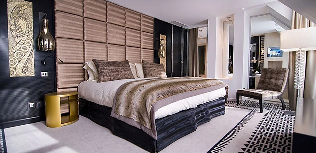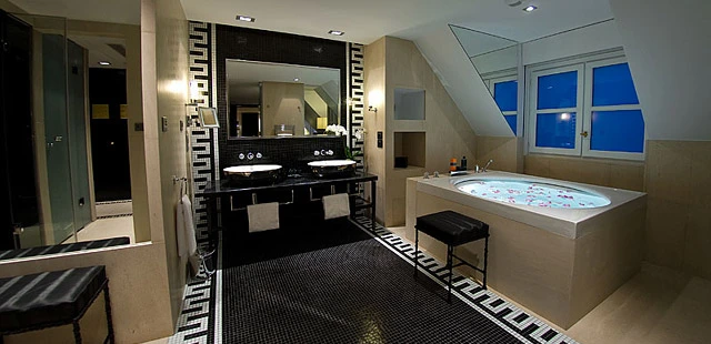"Parisian interior designer and architect Didier Gomez used a palette of opal greens and pearl greys in the Sofitel Paris Le Faubourg's 147 rooms, which have ornate cornices, crystal chandeliers, leather-lined wardrobes, Bose sound systems and Hermès toiletries." Full review