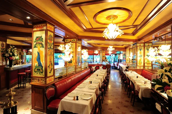 "This colorfully restored brasserie was once popular with high society, who came to observe the workers in the old market and to relish the onion soup."