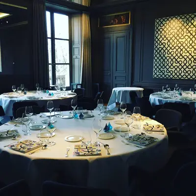 "This Michelin three-star restaurant in the Paris Mint has five elegant dining rooms with towering windows offering views of the Seine, the Louvre, and the Île de la Cité." Full review