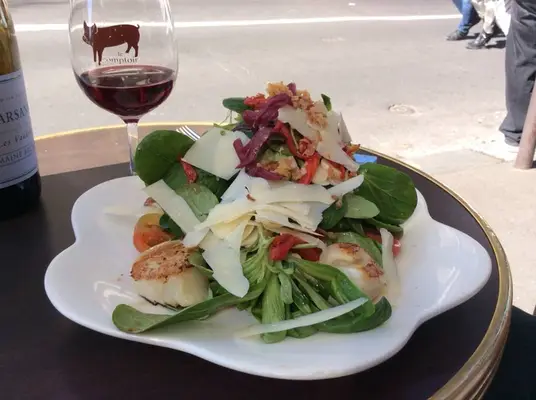 Start with charcuterie or pâté, then choose from open-faced sandwiches like a smoked salmon–and–comté cheese croque monsieur, gourmet salads, and a variety of hot dishes such as braised beef cheek, roast tuna, and Camdeborde's famed deboned and breaded pig's trotter.