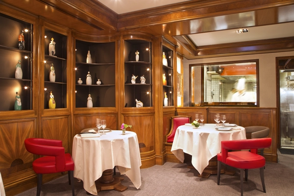 “Michel Rostang's restaurant has the look and feel of a private mansion divided into two intimate wood-paneled dining rooms, decorated with collections of statuettes.”