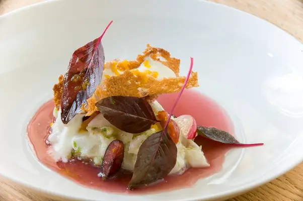 “This stylish modern bistro decorated in jewel tones serves food to match its stunning location under the arcades of the Palais-Royal, facing its magnificent gardens.”
