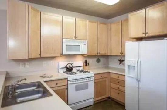 “The complex has 17 one-, two-, and three-bedroom units with well-equipped kitchens, gas fireplaces, balconies, washers and dryers, and flat-screen TVs in the living room.”