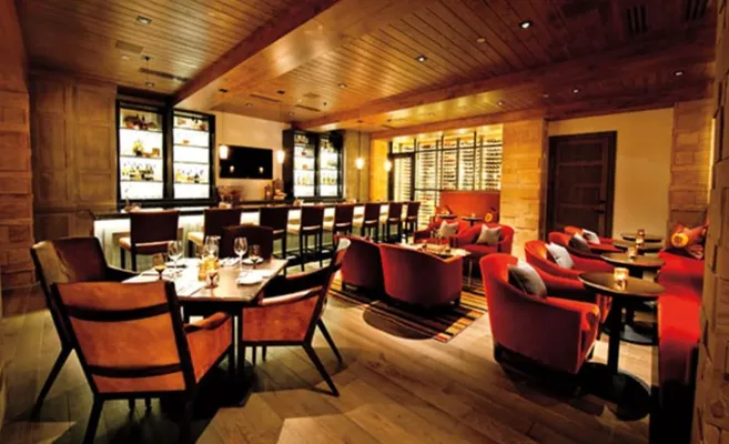 “Situated inside the upscale Canyons Resort and sporting mountain views, there's American farm-to-fork, seasonal cuisine and outdoor dining when weather permits.”