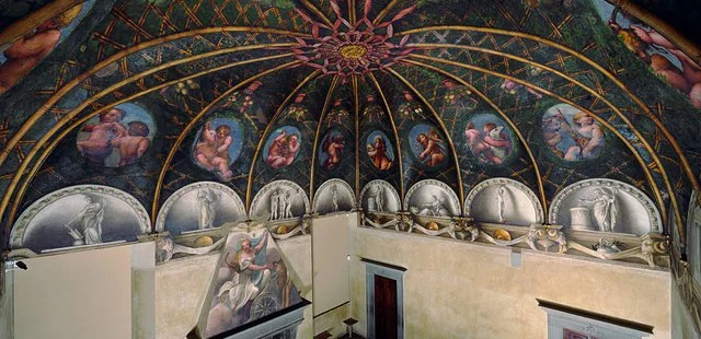 “The Camera di San Paolo in the convent of the same name, displays frescoes by the prolific Correggio.”