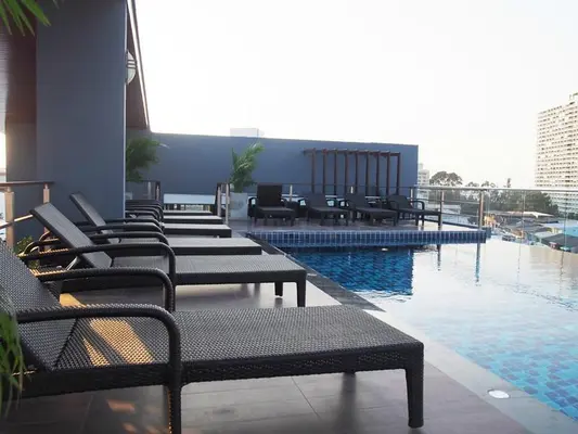 “This three-pearl, 54-room hotel is located just a few minutes' walk from Pattaya's major nightlife area and a 10-minute walk from the beach.”