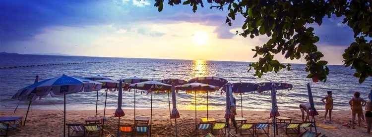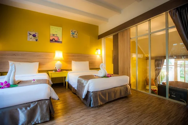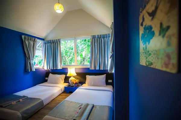 “The lagoonlike swimming pool has an adorable island smack in the middle with two frizzy palms.”