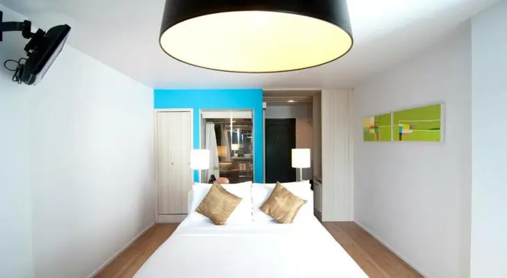 “This hundred-room hotel with swimming pool is in the quieter northern part of town just across the road from the beach.”
