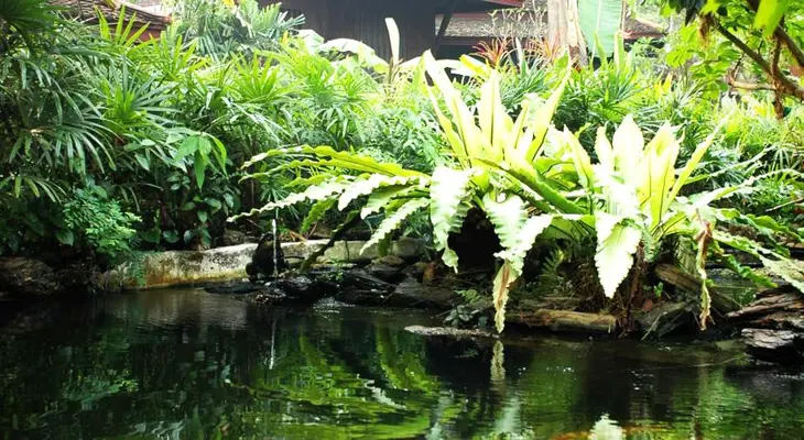 “The Sugar Hut's Thai-style villas and bungalows are gathered around shaded fish ponds and winding paths... There are three swimming pools, a spa and sauna, and an atmospheric restaurant.”