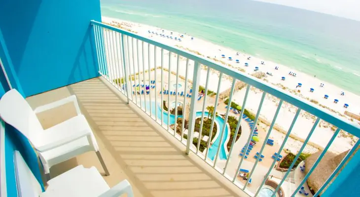 “Known for its 250-foot lazy river and cascading waterfall, this gulf-front hotel is one of the most family-friendly on the beach. As one of the area's newest hotels, it has stylish guest rooms.”