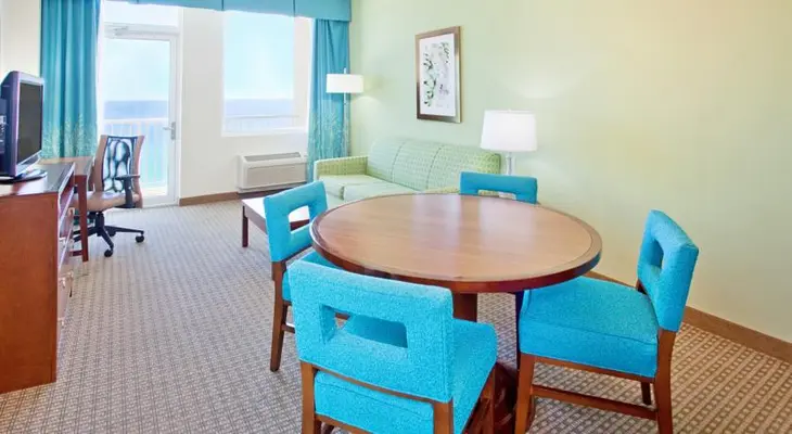 "The beachfront location and family-friendly amenities -- namely the pool and 250-foot lazy river -- are major draws." Full review