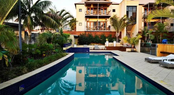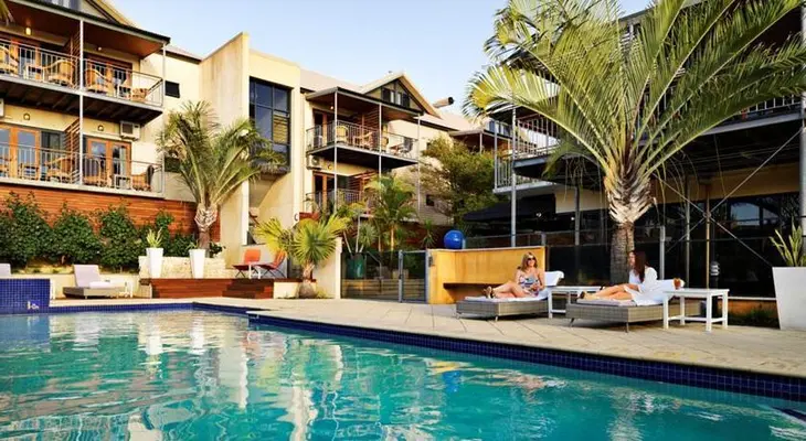 “Separated from Scarborough Beach by a busy road and a petrol station, this Balinese-themed complex has wooden pathways leading to shady palm gardens and fish ponds.”