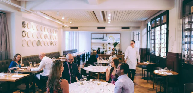 “Chef Giles Bailey puts out two menus, one at the bar and one in the main restaurant space. Think fresh crudo, grilled cuttlefish, pizza bianca and beef from the Josper grill. ”