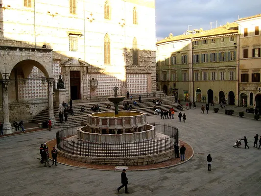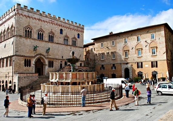 The centrepiece of Piazza IV Novembre, the delicate pink-and-white marble Fontana Maggiore was designed by Fra Bevignate and built by father-son team Nicola and Giovanni Pisano between 1275 and 1278. — Lonely Planet