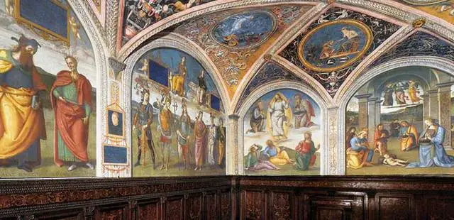 "Built in the 15 C to house the moneychangers, it has an audience room decorated with remarkable frescoes by Perugino and his pupils and a Statue of Justice, by Benedetto da Maiano (15C)." Full review