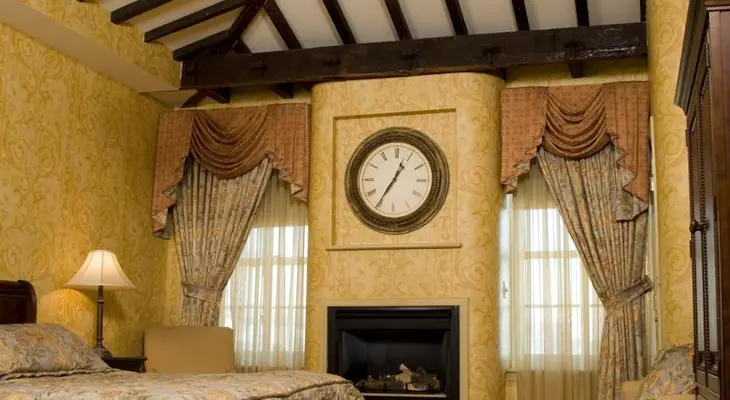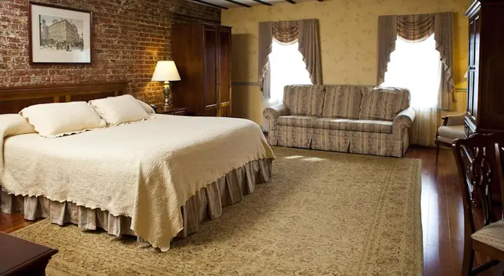 "Picture exposed brick, wrought iron beds, Chippendale-esque furniture, fireplaces and hot tubs...these are some of the offerings of rooms at Penn's View Inn."