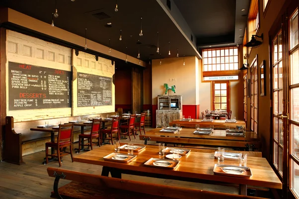 "For classic barbecue entrees and sides, including fried green tomatoes, collard greens and buttered biscuits, bring the family to this laid-back Southern-inspired joint" Full review